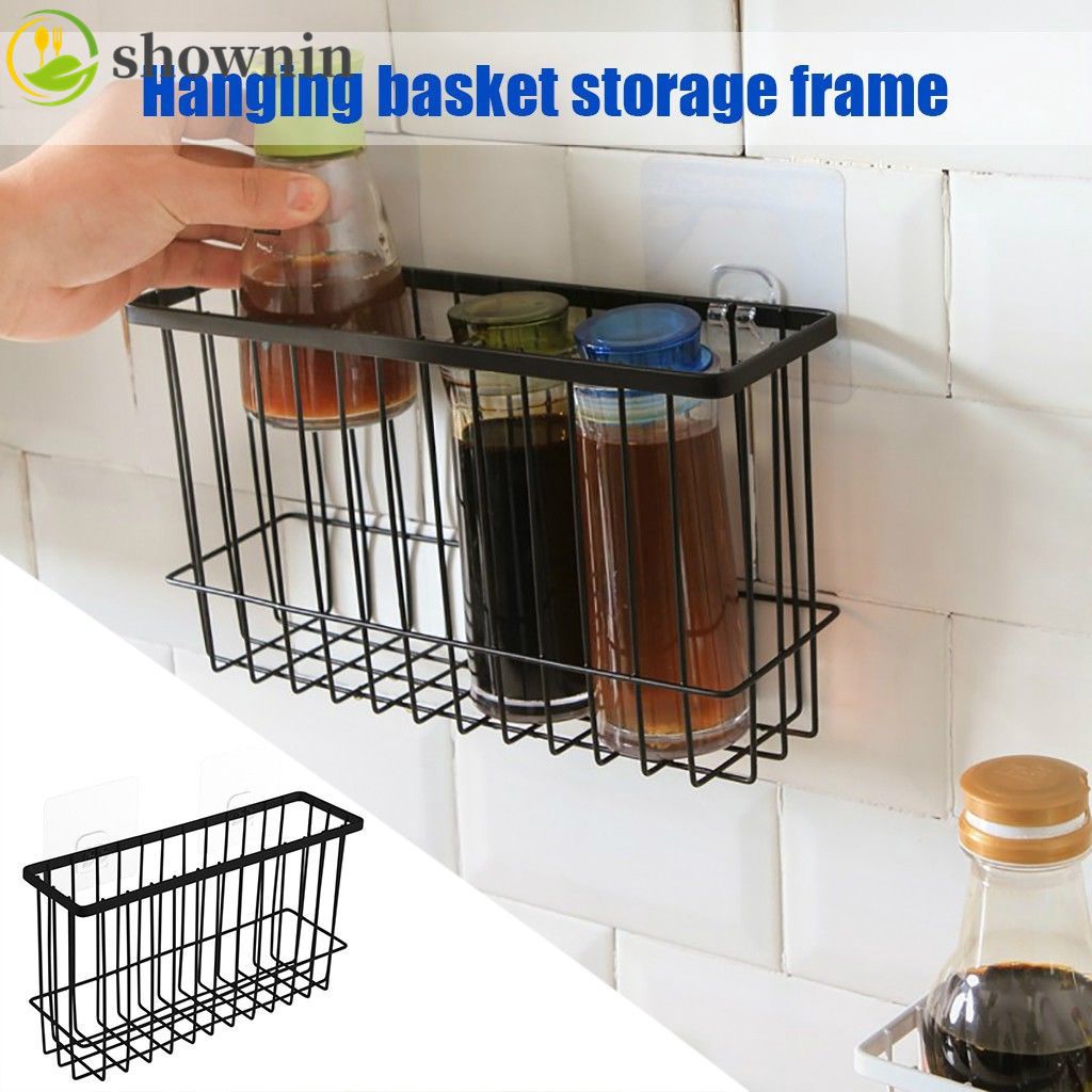 Shownin Self Adhesion Kitchen Bathroom Iron Wire Basket Bin