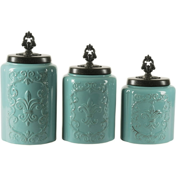 Imax 5506 3 Provincial Canister Set Pack Of 3 Ix 5506 3 Teal