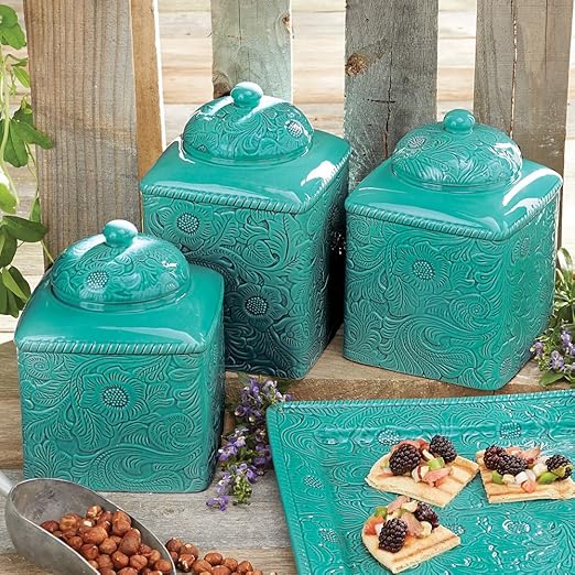 Turquoise Canister Set 3pc Savannah Kitchen Canisters W Base