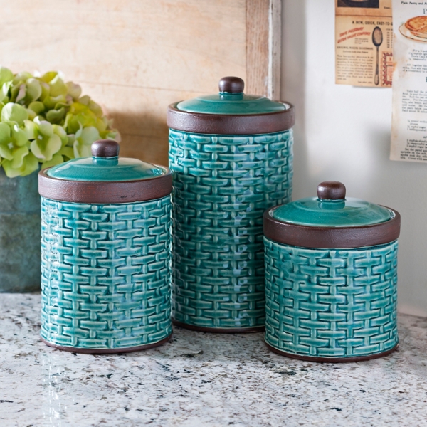 Omniware Simsbury 3 Piece Turquoise Ceramic Canister Set