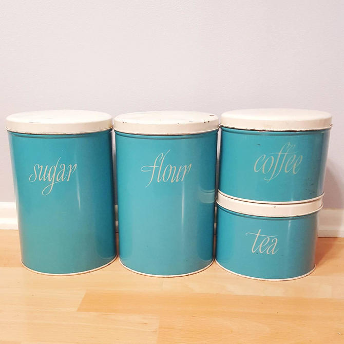 Vintage Turquoise Kitchen Canister Set With Lid Old Kitchen Container
