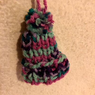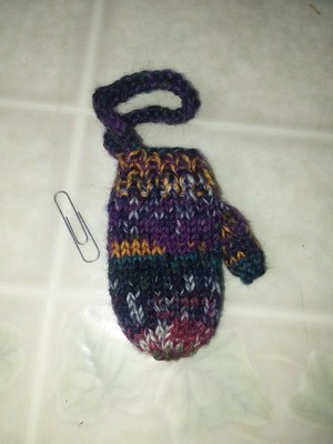 Hand Knit Christmas Ornament Mitten Variegated Yarn Approx 3