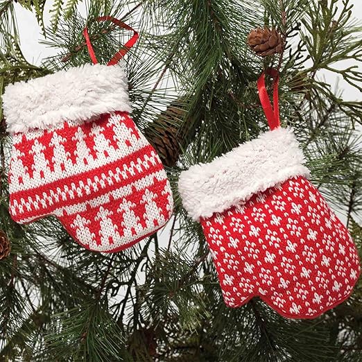 Amazon Com Meravic Knit Mitten Christmas Ornaments Set 2 6 Home