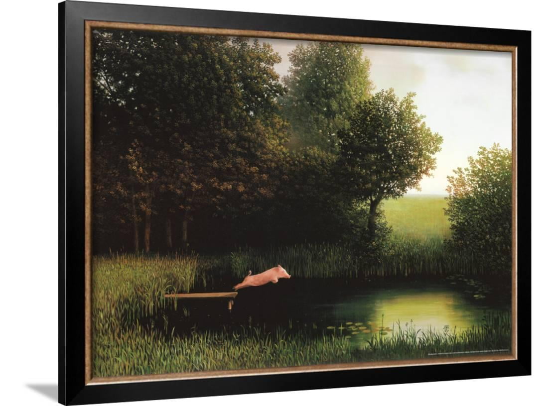 Amazon Com Michael Sowa Framed Art Print 32x24 Diving Pig