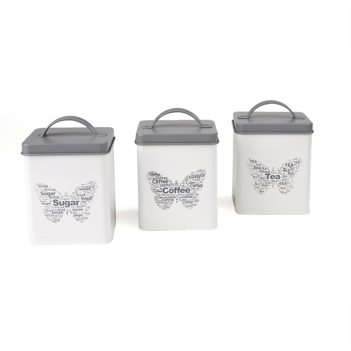 Mind Reader 3 Piece Butterfly Metal Canister Set In White Bed
