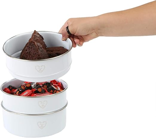 White Metal Nesting Kitchen Canisters With Air Tight Lids 3pcs