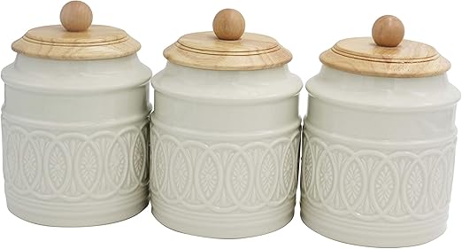 Crest 3 Piece Ceramic Canister Set With Knob Top Lid Hdc55836