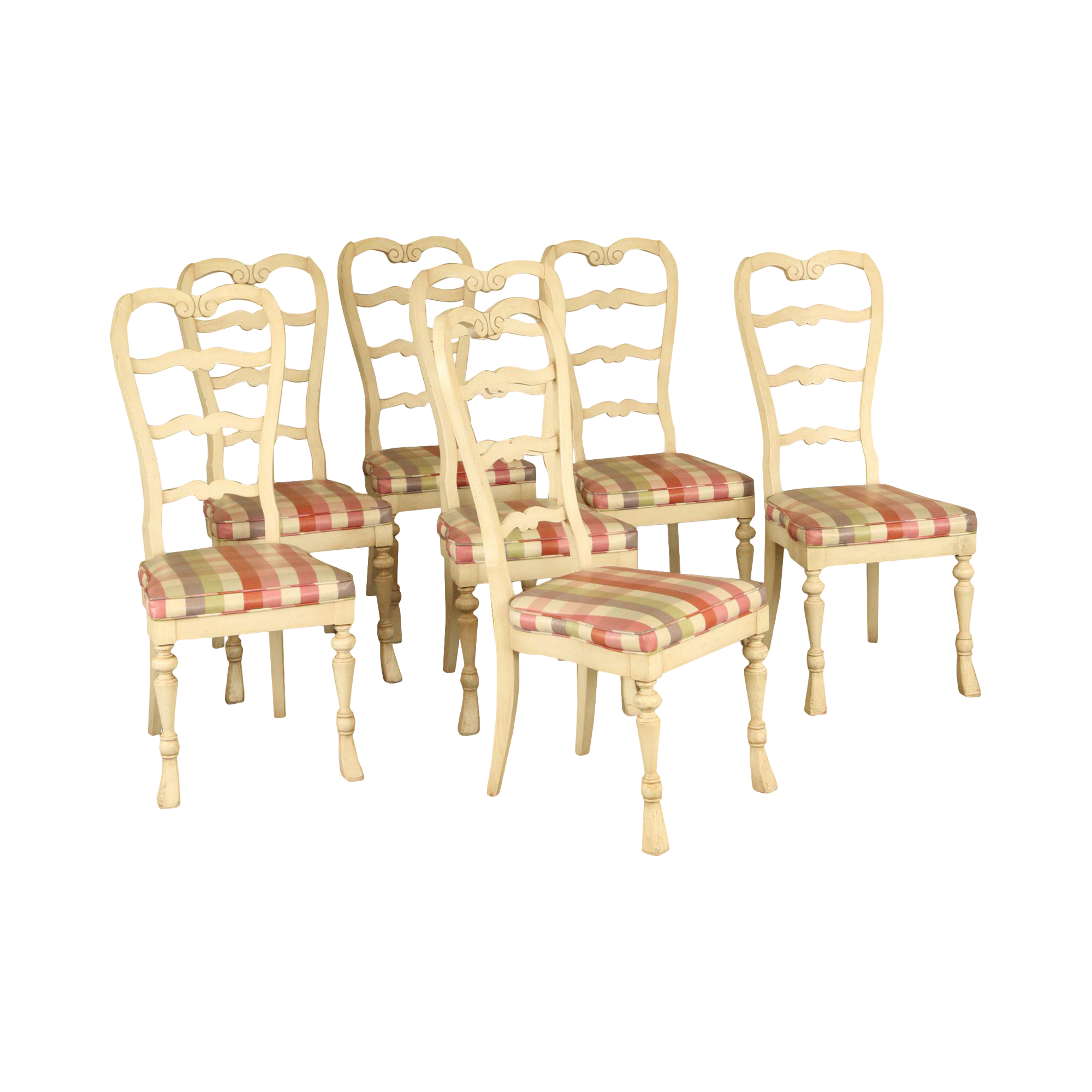 Set Of Six Country French Ladder Back Chairs With Upholstered