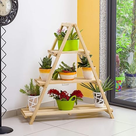 3 Tier Home Garden Wood Frame Corner Flower Ladder Display Shelf