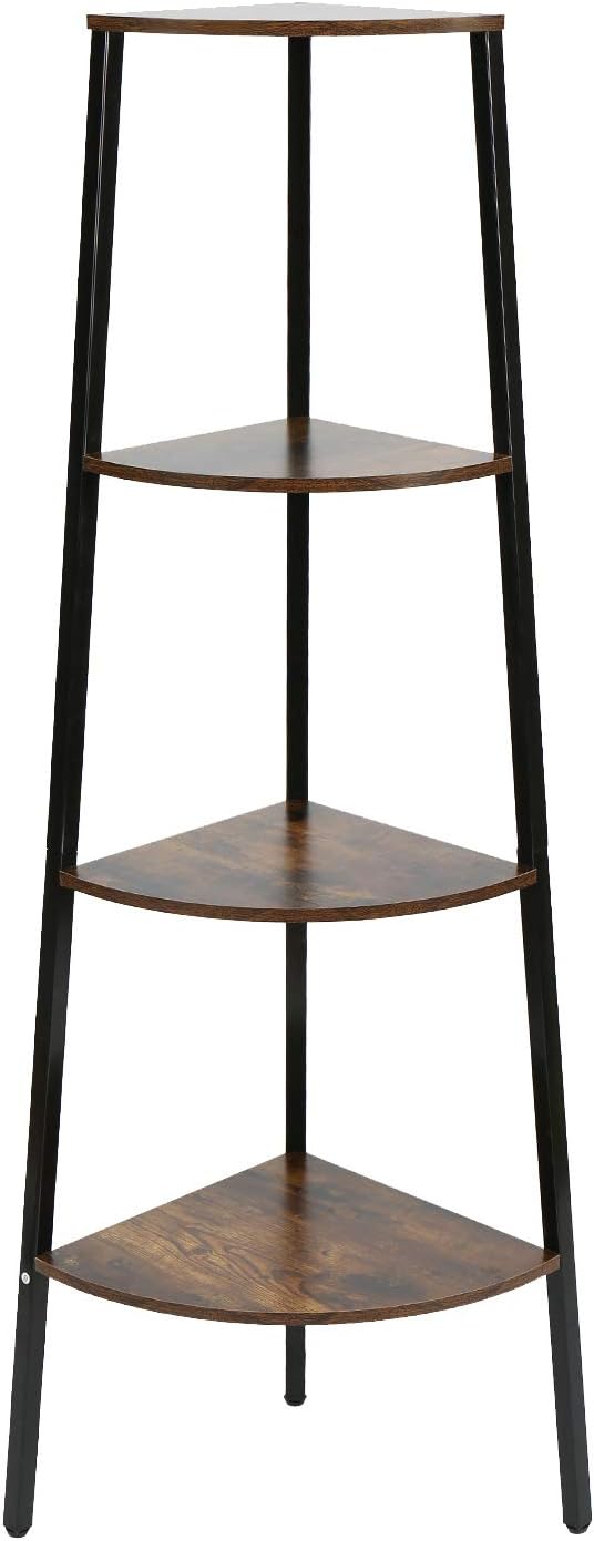 Black Home Bi 4 Tier Industrial Corner Ladder Shelf Bookcase
