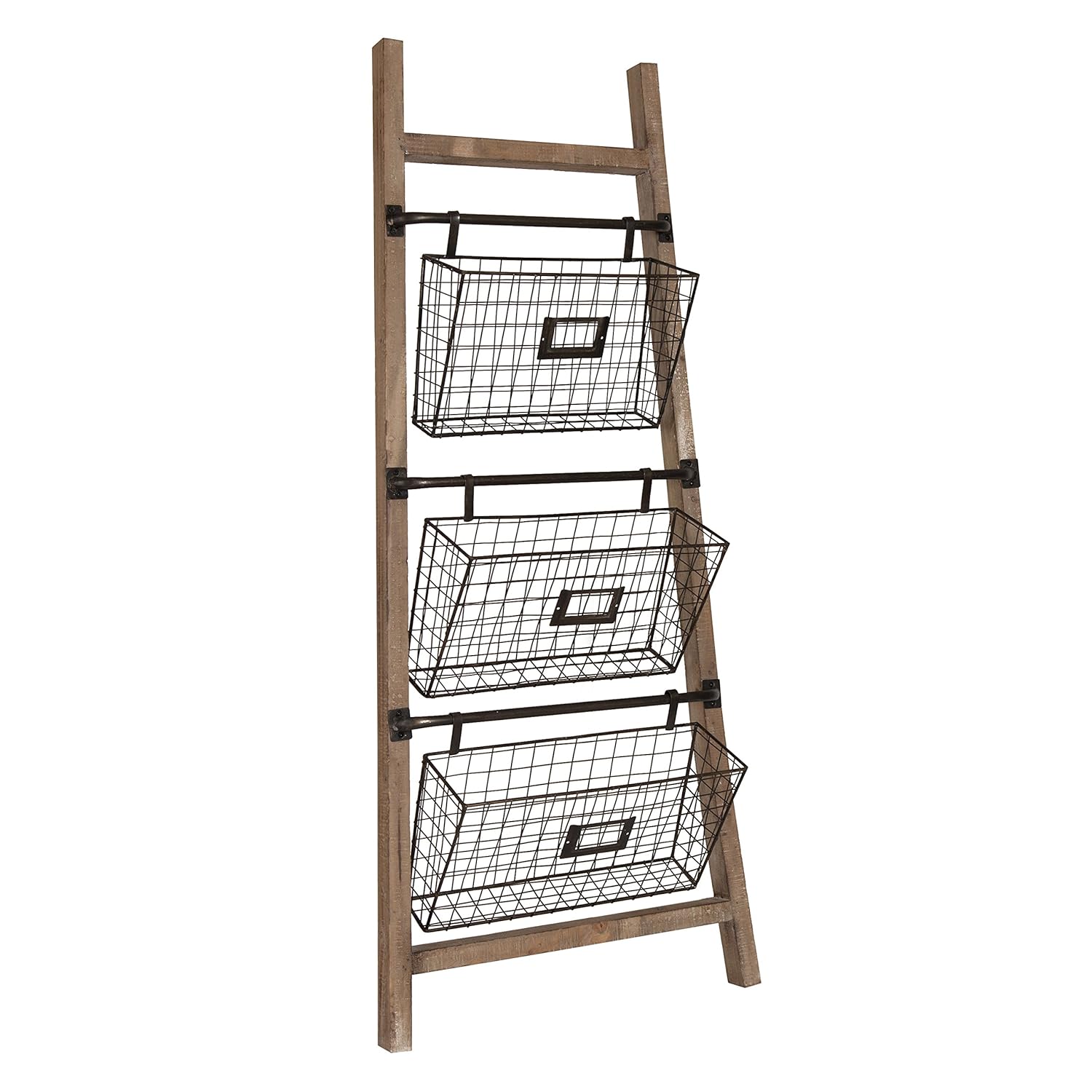 Amazon Com Creative Co Op Wood Ladder With 5 Wire Baskets