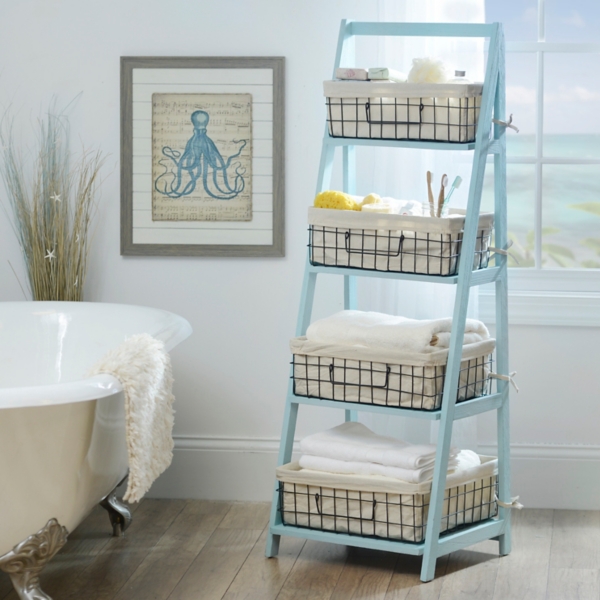 Blue Storage Basket Wooden Ladder Shelf Kirklands