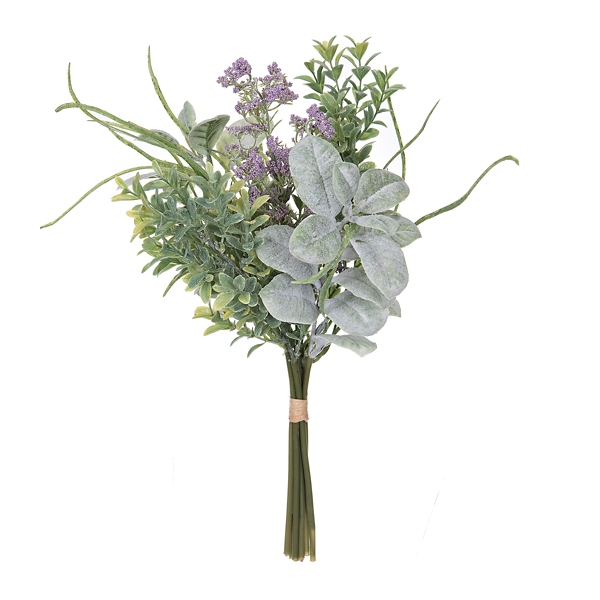 Artificial 12 Lilac Sedum Lamb S Ear Bouquet Purple Green Silk