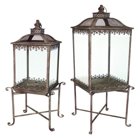 Shop Set Of 2 Decorative Outdoor Lanterns With Stand And Glass