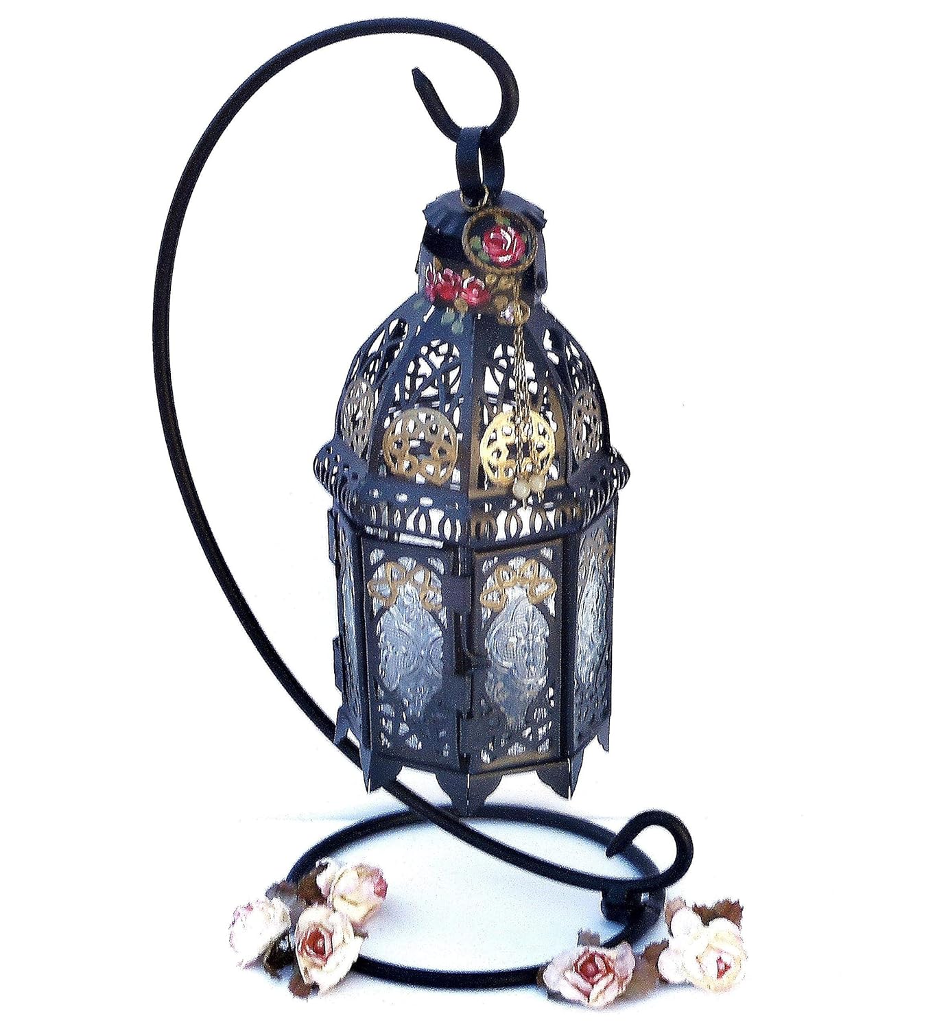 Iron Glass Moroccan Lantern With Stand Battery Type