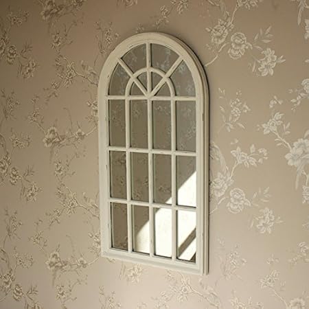 Melody Maison Large Cream Arched Window Wall Mirror 46cm X 86cm