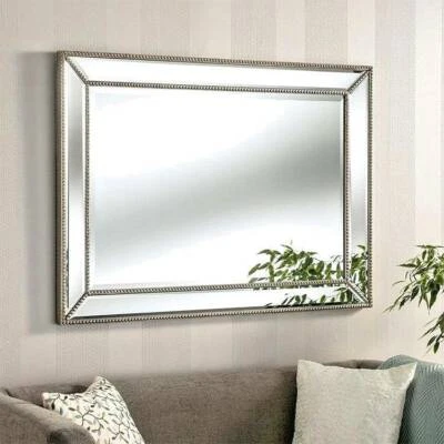Zeta Silver Beaded Frame Decorative Wall Mirror X Large Ebay