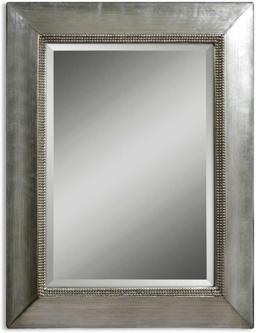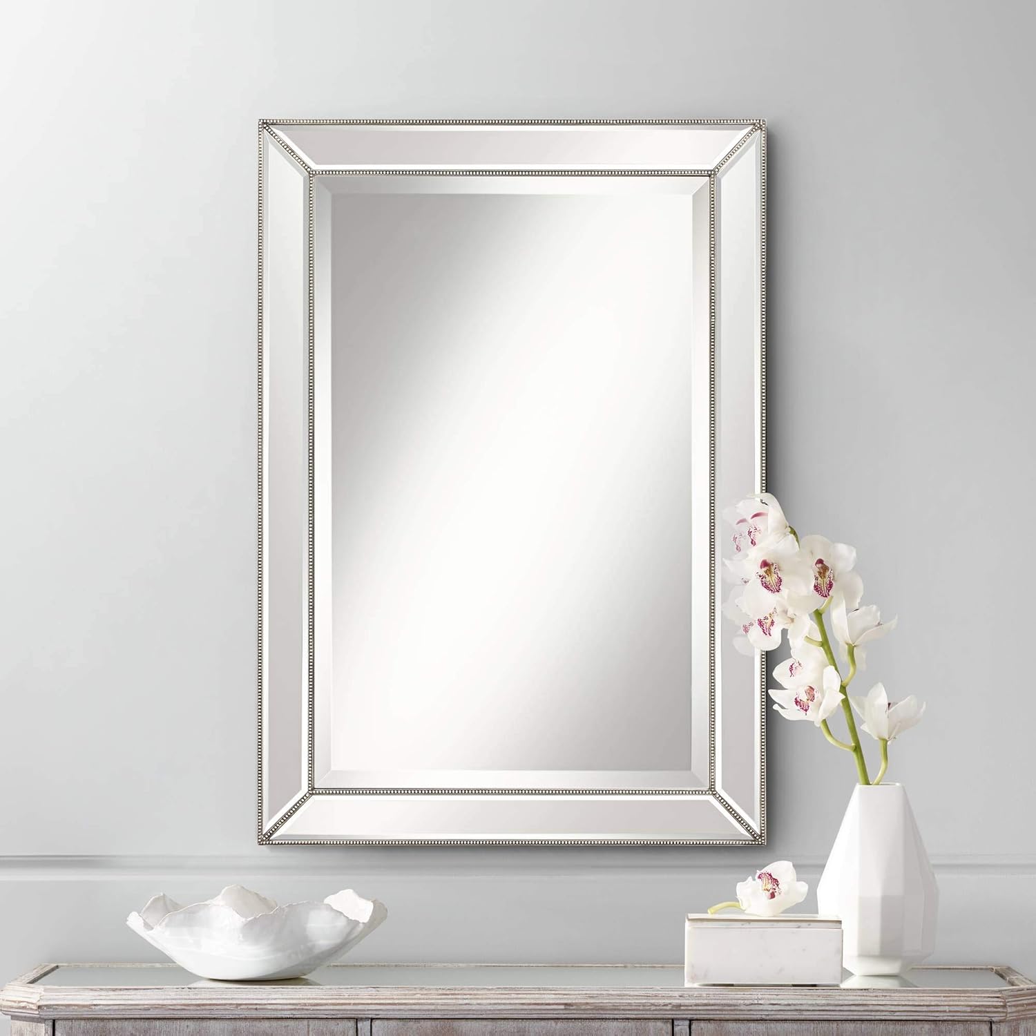 Shop Silver Beaded Rectangular Vanity Wall Mirror And Beveled