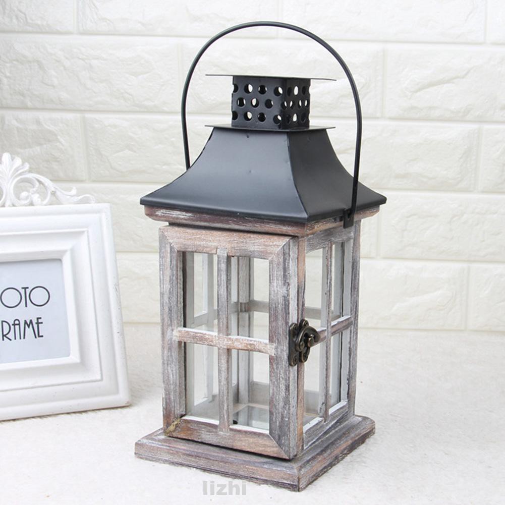 Wrought Iron Glass Retro Candle Holder Outdoor Candle Lantern