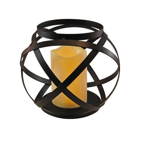 Black Banded Metal Lantern W Led Pillar Candle And Timer Lumabase