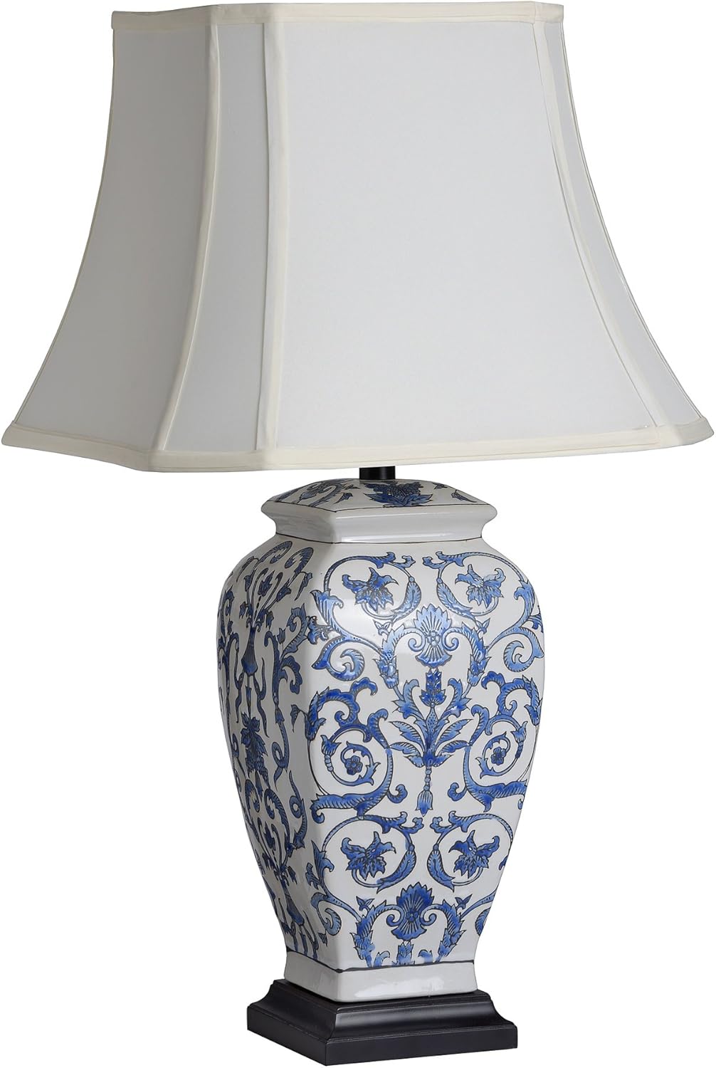 Large Blue White Traditional Ceramic Table Lamp Cream Shade