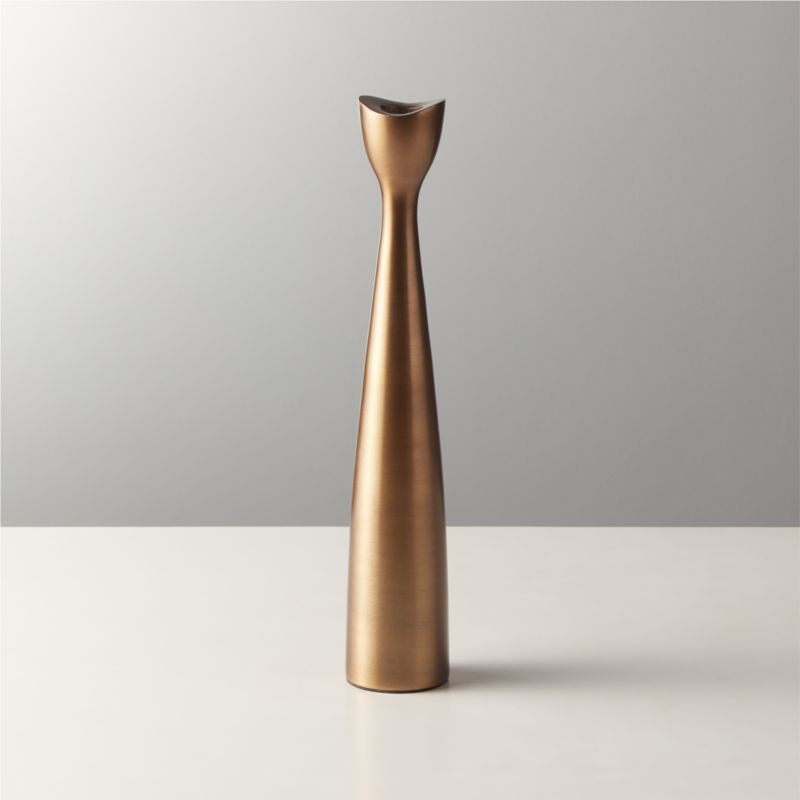 Yasu Candle Holder Large Bronze Aluminium Bronze Finish H 26 Cm D 9 Cm