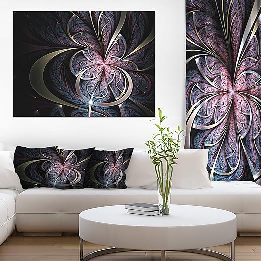 Design Art Dark Blue Fractal Butterfly Flower Large Floral Canvas