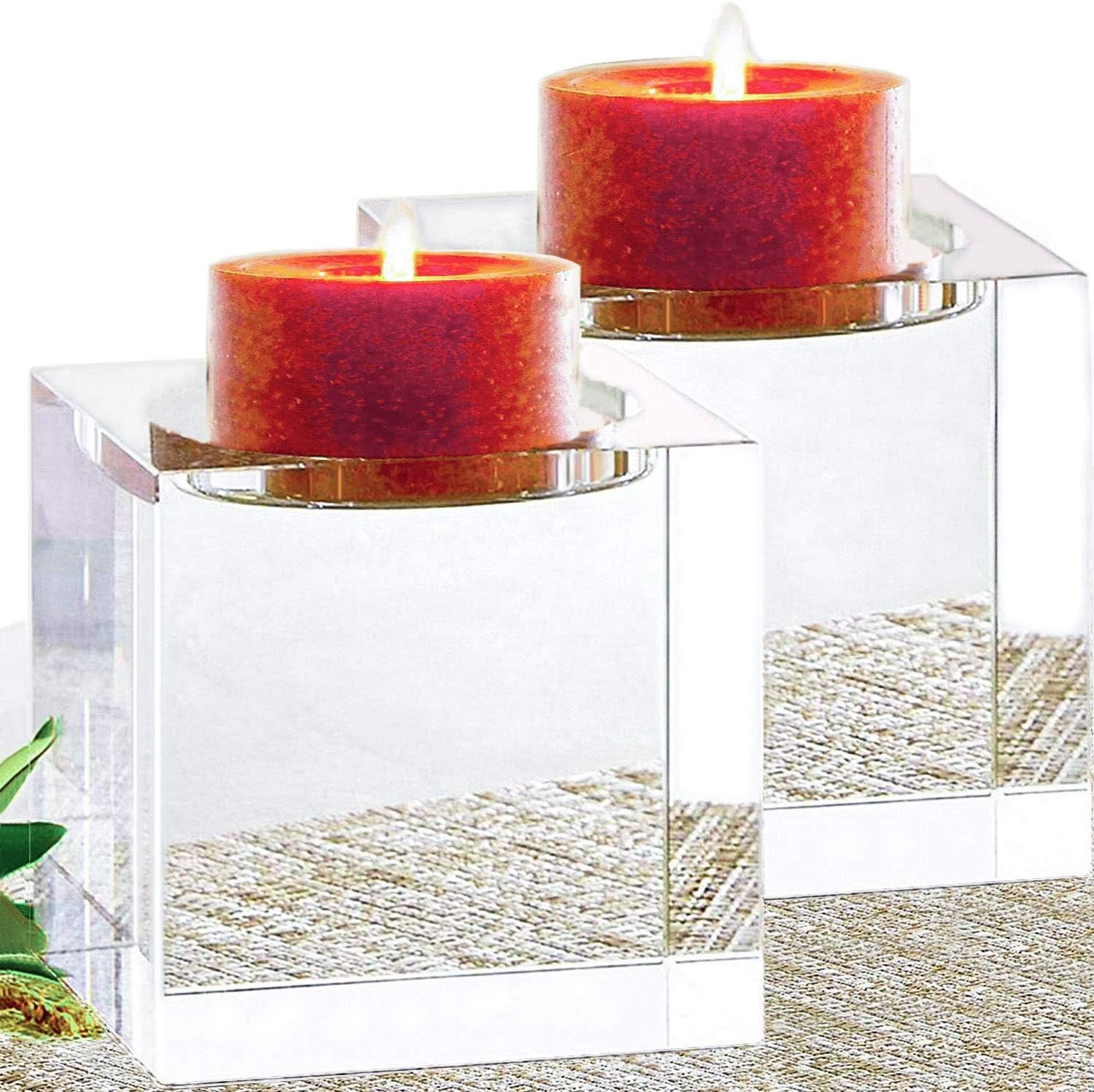 Amazing Home Large Crystal Pillar Candle Holders Set Of 2