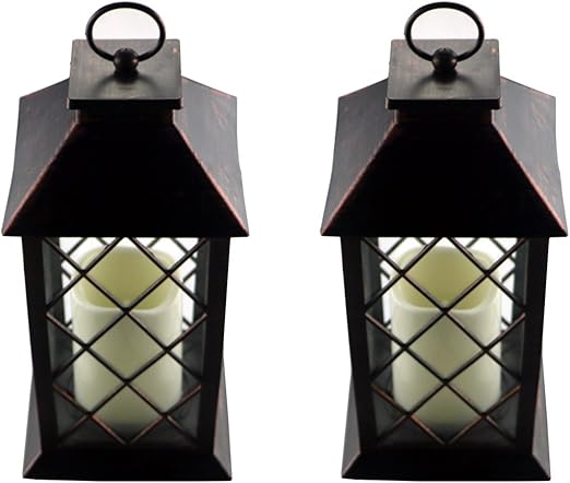 Amazon Com 2pcs 14 Tall Bronze Vintage Candle Lantern W Led