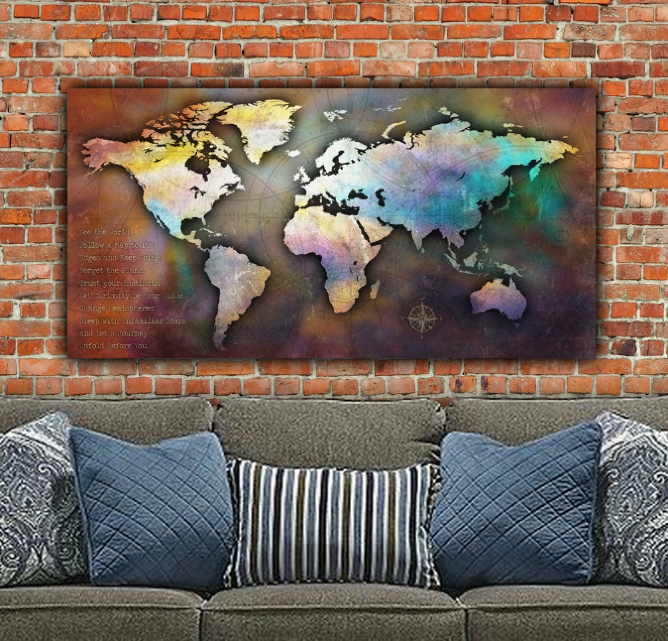 World Map Multi Color Canvas Wall Art Large Wall Art Canvas Etsy