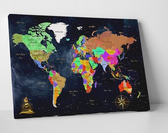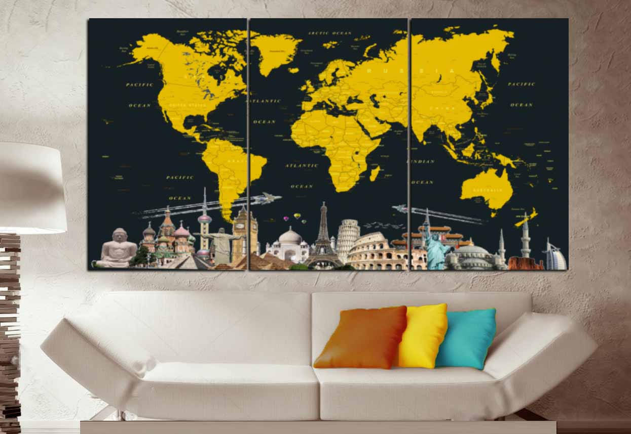 Large World Map Canvas Art World Map World Map Wall Art World Map Canvas Large World Map Print Push Pin Map World Map Travel Detailed Map