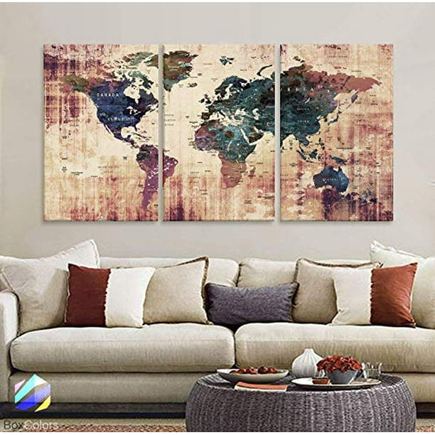 Original By Boxcolors Large 30 X 60 3 Panels 30x20 Ea Art Canvas Print Watercolor Brown Green Old Map World Push Pin Travel Wall Home Office Decor Framed 1 5 Depth M1819 Walmart Com