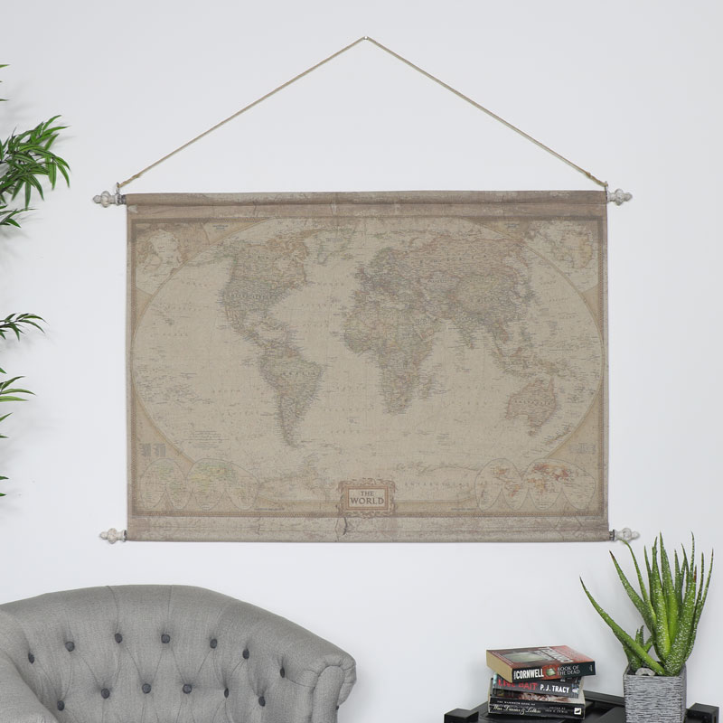 Large Vintage World Map Hanging Canvas Print Melody Maison