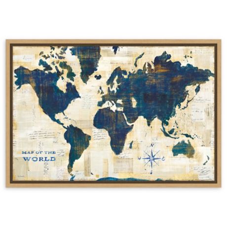 Amanti Art World Map Collage Framed Canvas Wall Art Bed Bath