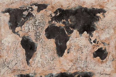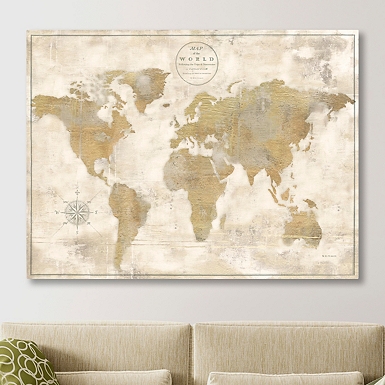 Globe Tan Map World Map Canvas Vintage Map Art Brown Gold Map