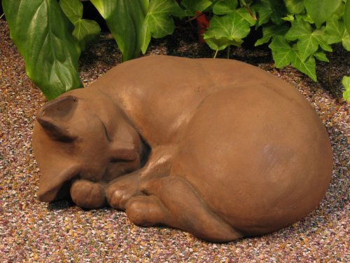 Cat Curled Kitten Large 12 Dark Brown Stain Statue Sculpture Cast