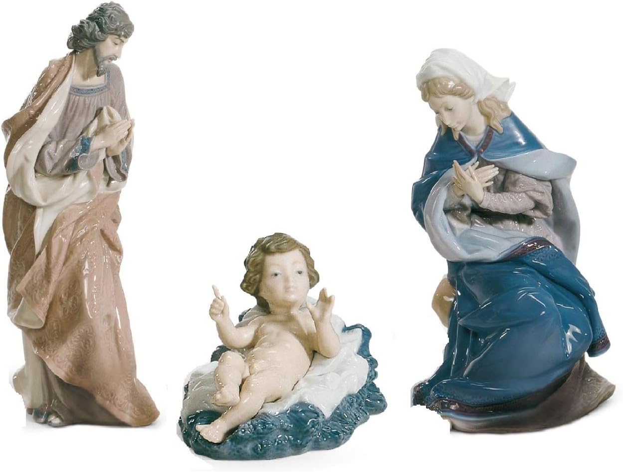 Amazon Com Lladro Porcelain 3 Piece Large Nativity Set With Saint