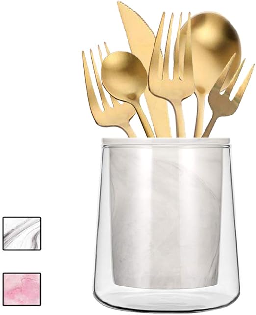 Heavy Duty Large Capacity Compact White Marble Utensil Holder