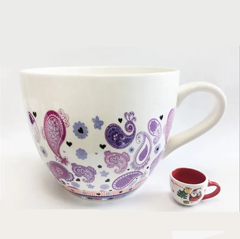 Tea Cup Shaped Design Porcelain Ceramic Glaze Large Capacity