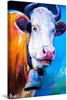 Startonight Canvas Wall Art Abstract Cow With A Bell Blue