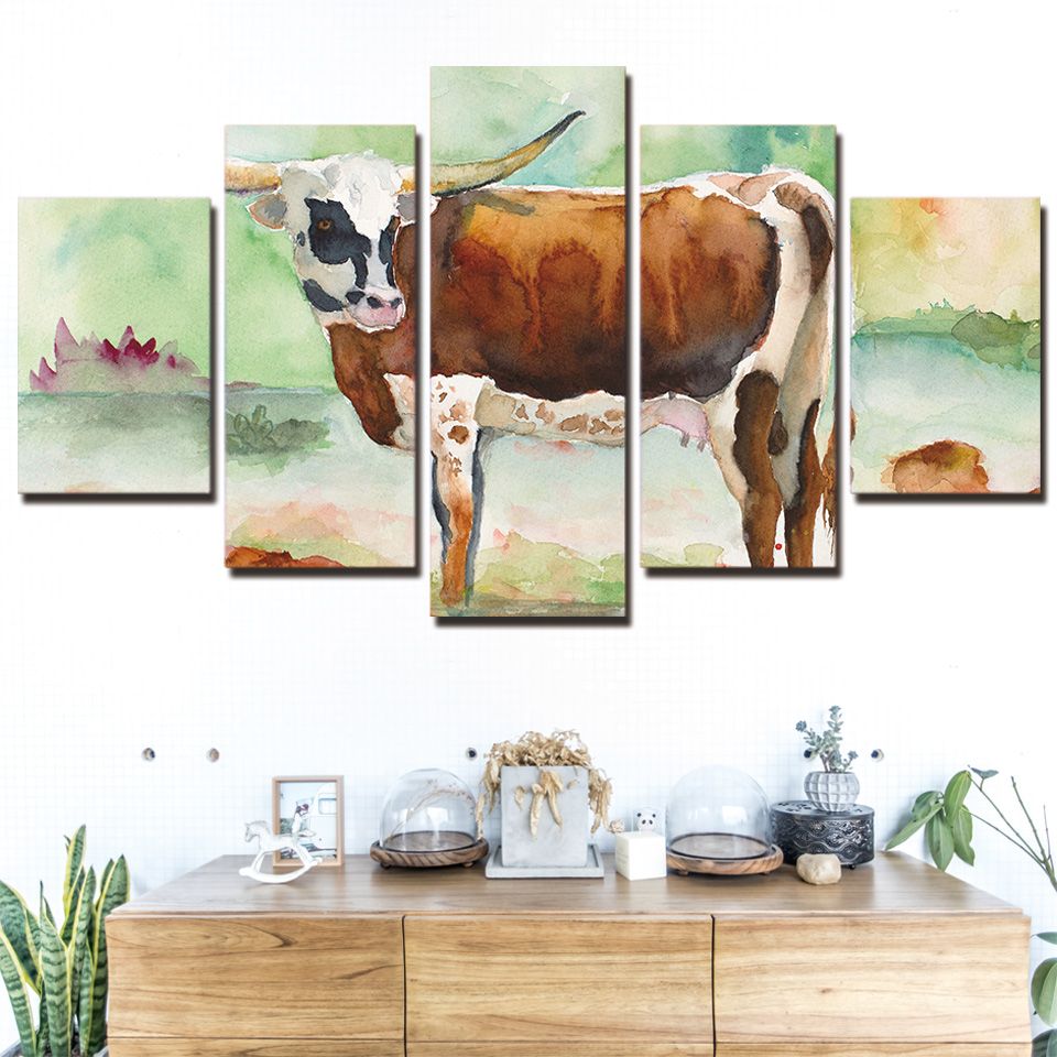 2020 5 Panel Canvas Art Print Hd Spring Milk Cow Modern Modular