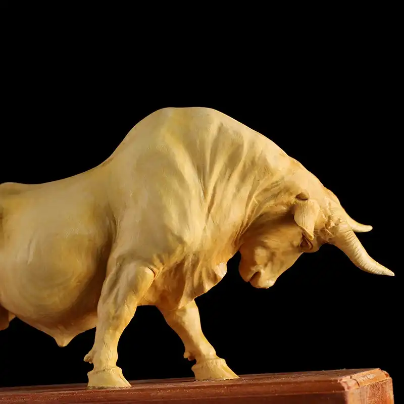 Solid Wood Charging Bull Wood Carving Wall Street Desktop