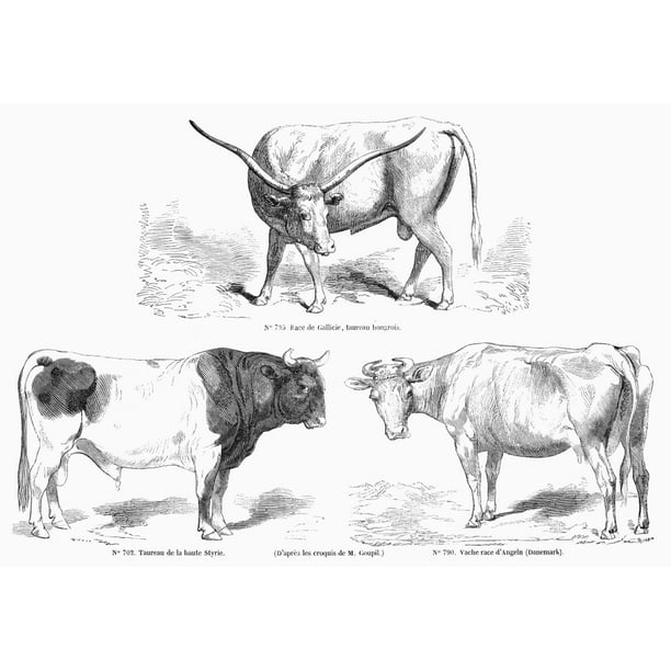 Stretched Canvas Art Cattle Breeds 1856 Ngalician Bull
