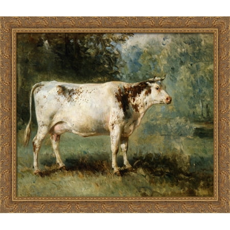 A Cow In A Landscape 34x28 Large Gold Ornate Wood Framed Canvas