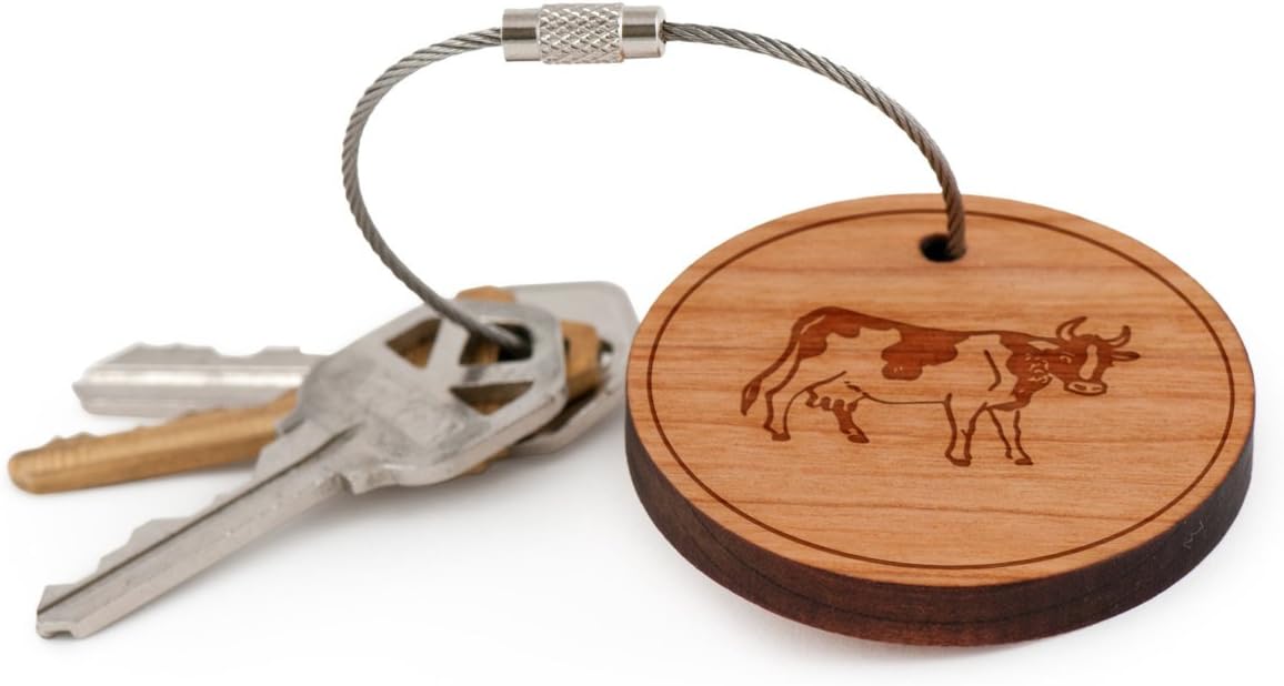 Amazon Com Cow Keychain Wood Twist Cable Keychain Large