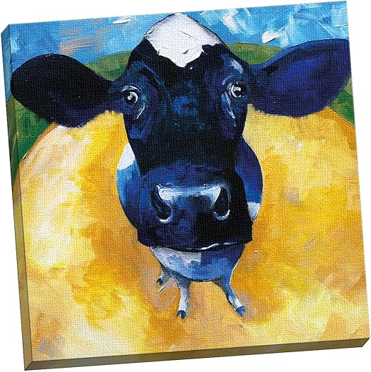 Large Cow Painting With Wood Frame Cow Canvas Cow Art Large
