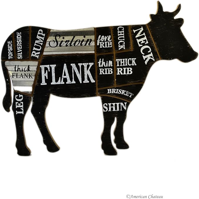 23 Large Wood Metal Butcher Black Sign Cow Cuts Of Beef Wall Art
