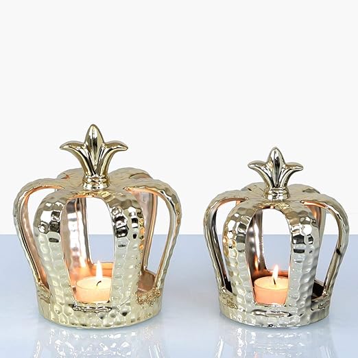 Angravehome Large Small Royal Gold Crown Tealight Candle Holder