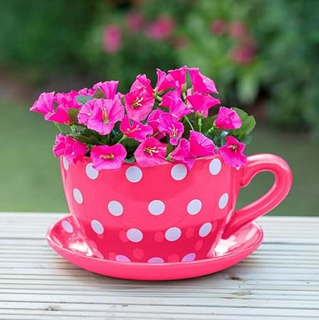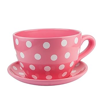 Giant Tea Cup And Saucer Planter Plant Pot Gardener Spotty Polka
