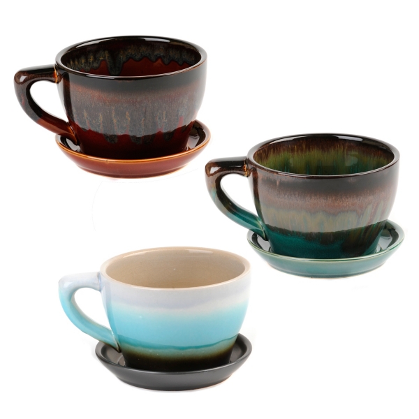 Large Ceramic Tea Cup Saucer Planter